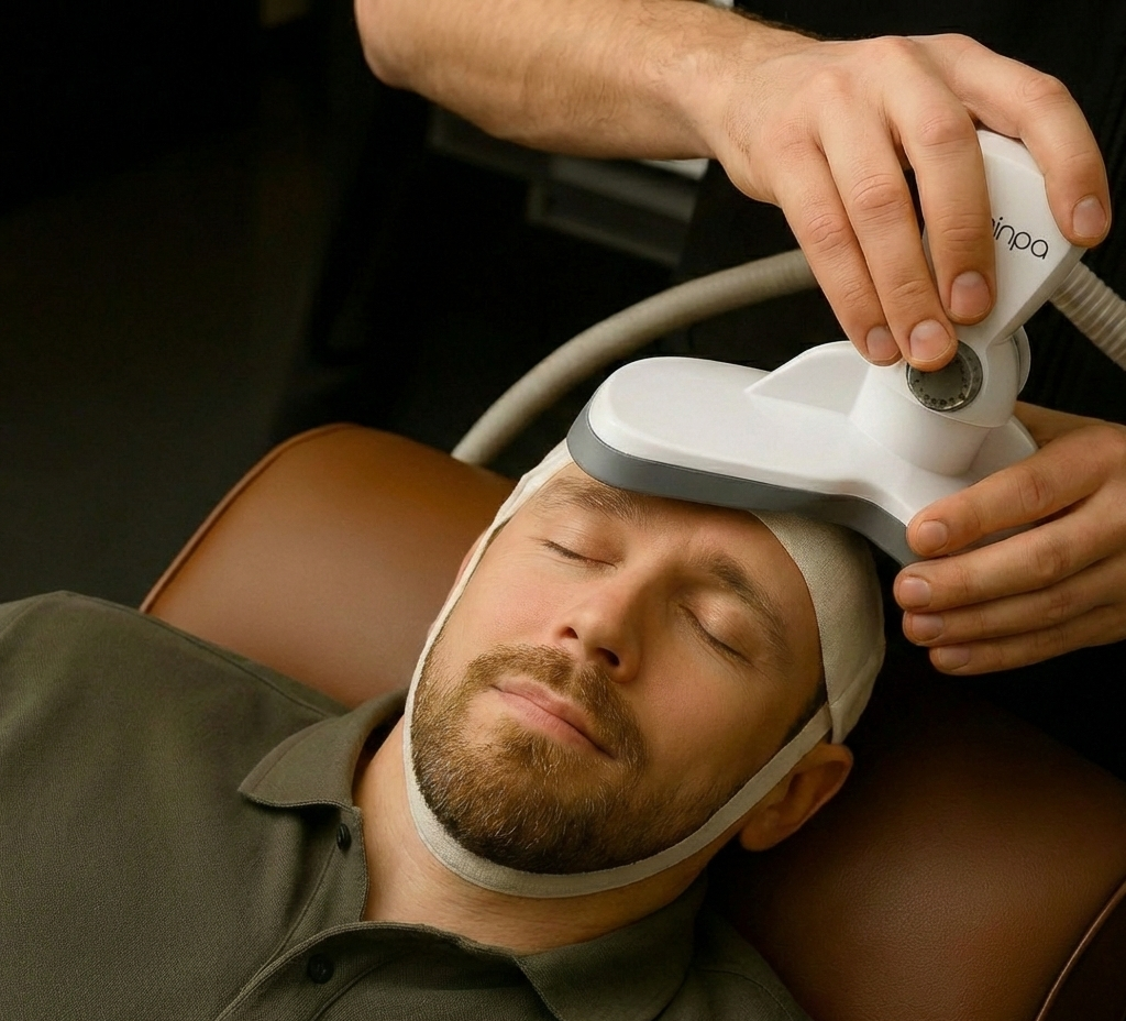 As seen in your generated images, the procedure involves a handheld or localized coil that delivers magnetic pulses to specific regions of the brain.